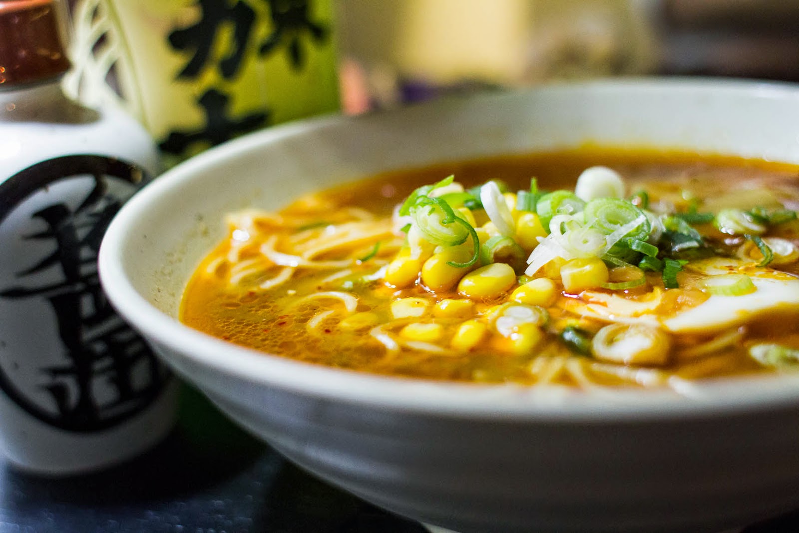 chashu ramen, plus corn kernels, the