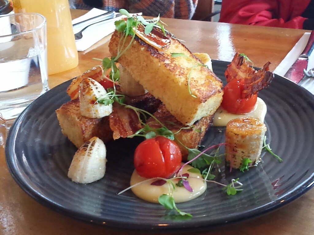 The combination of brioche French toast, caramelised banana segments and the most amazing lemon curd with the candied bacon and roasted cherry tomatoes was a triumph of sweet and savoury flavours, and had me experiencing a severe case of food envy.
