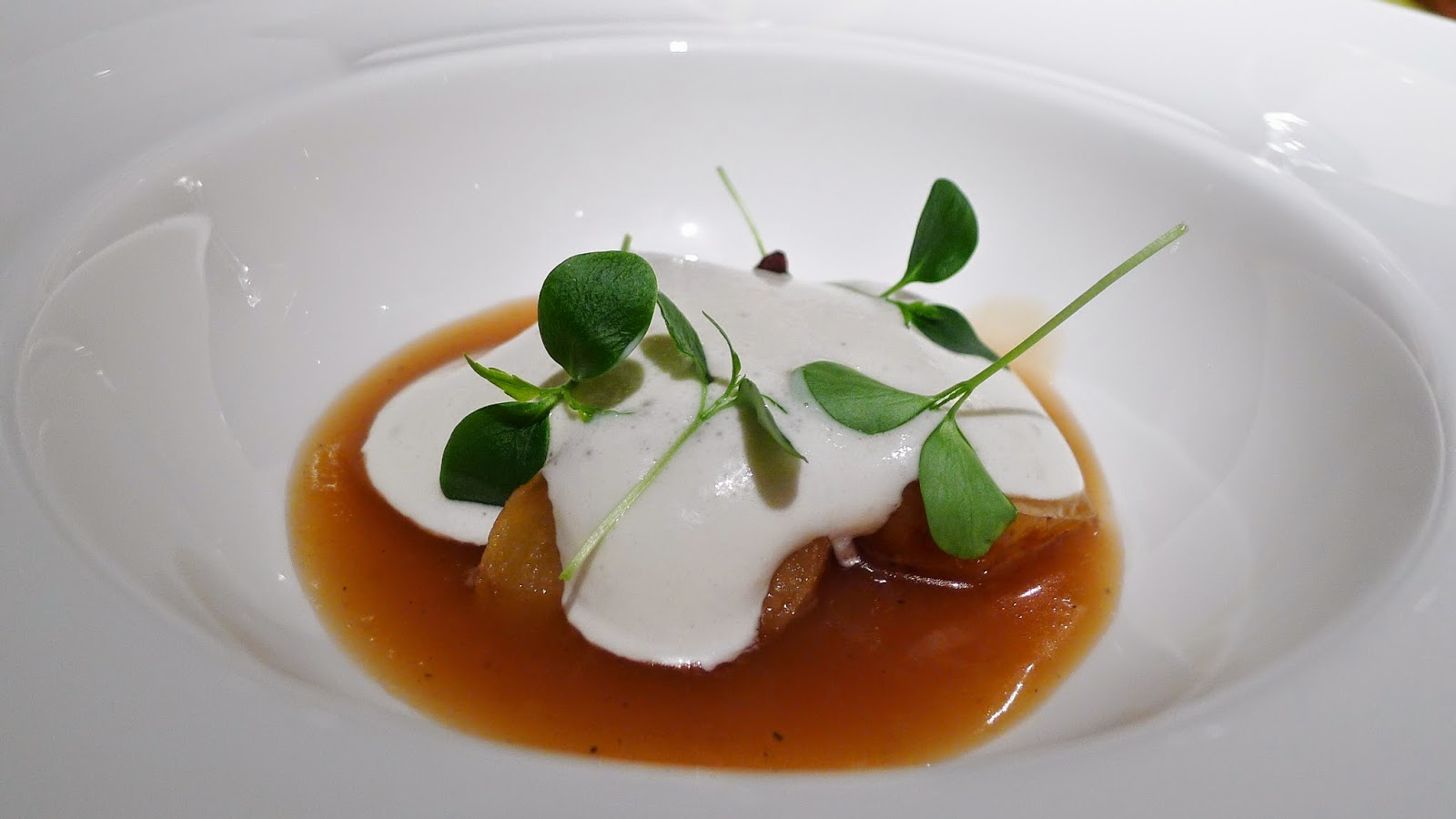 Moving on to the first and second courses in the tasting menu, we were presented with raw duck served with a mustard and apple cream.